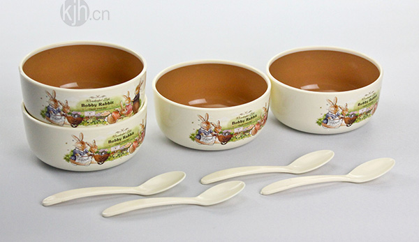 波比小號韓式雙色餐碗(4pcs)(贈4pcs湯匙)