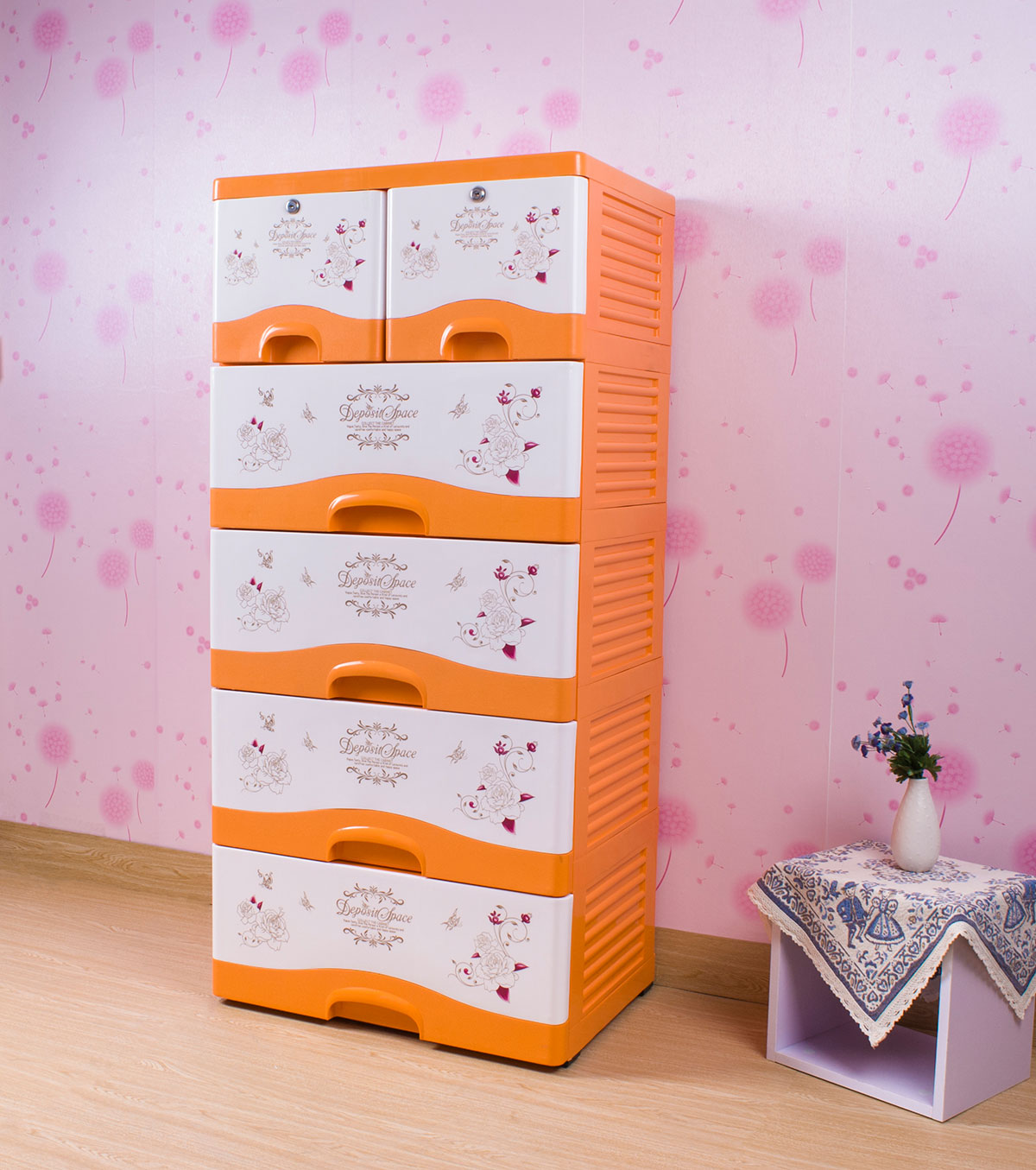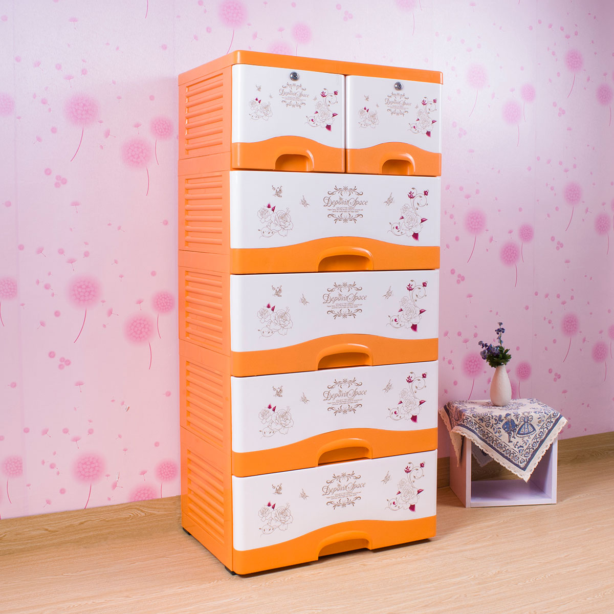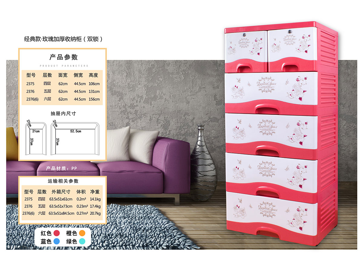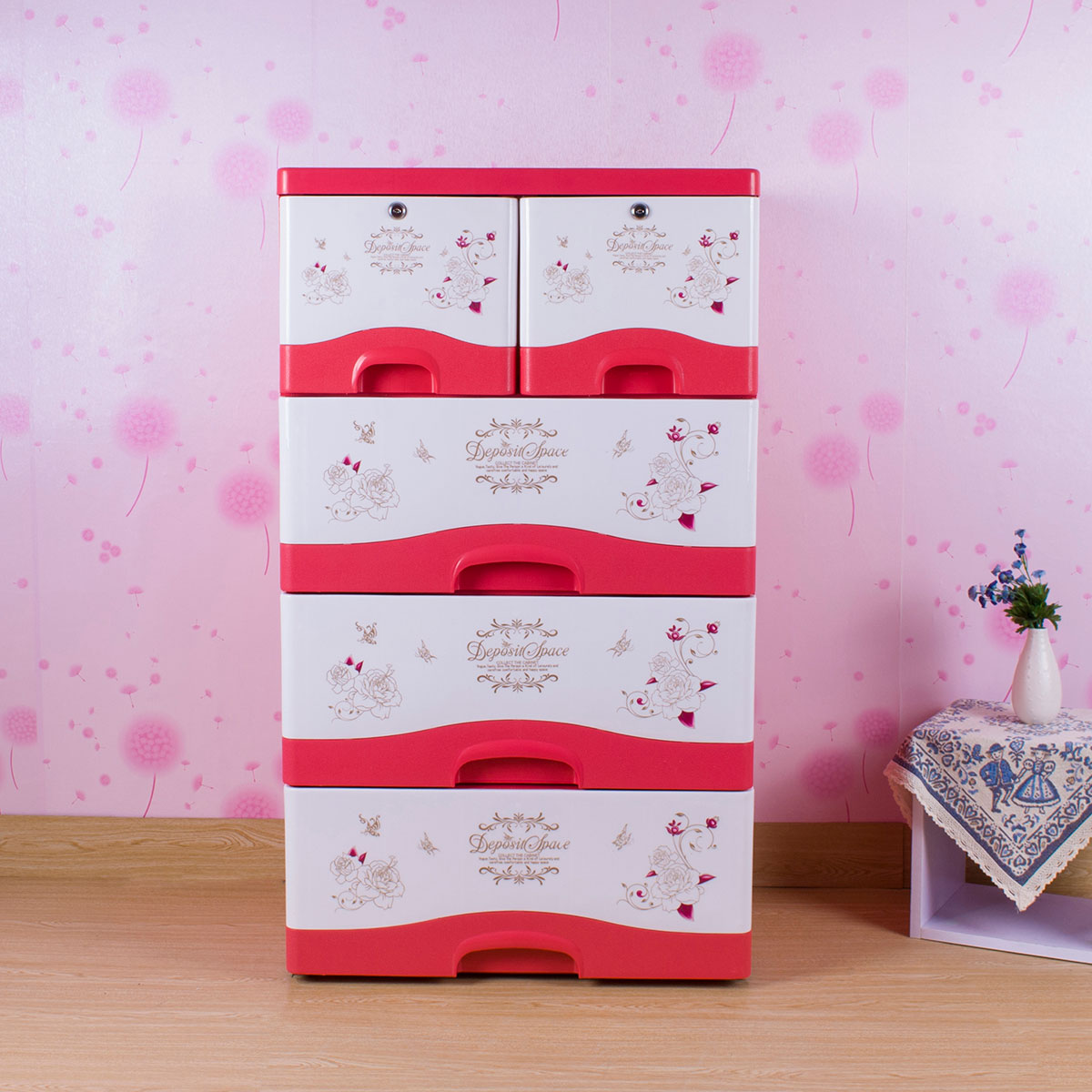 雙層格面印花帶鎖整理柜(四層/五層)