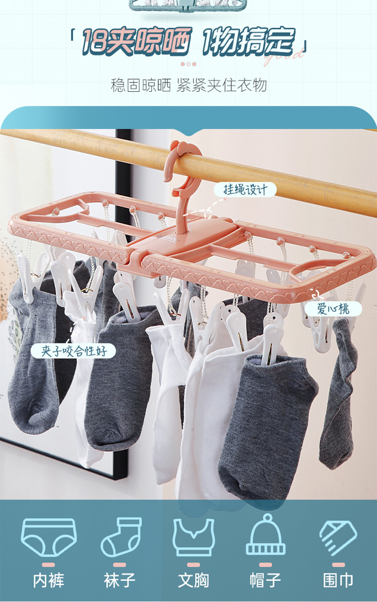 折合晾衣架18夾  2023年新色