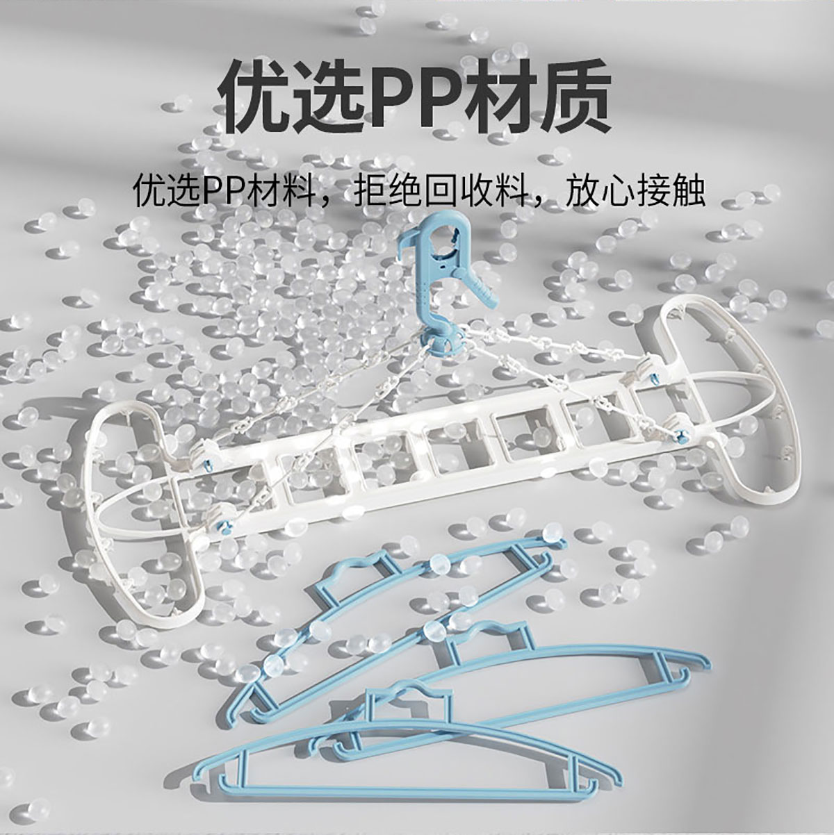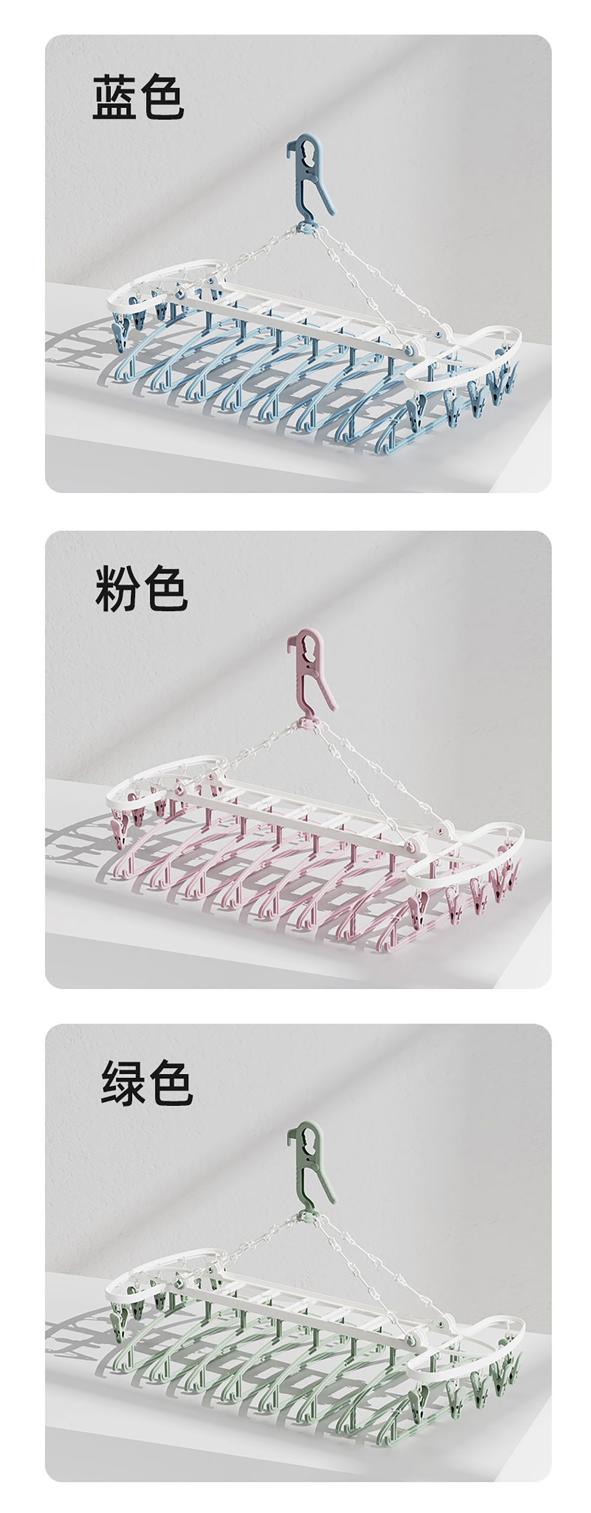 Size: 8衣架+12衣夾/折合:480*350*65mm 展開:700*380*125mm
