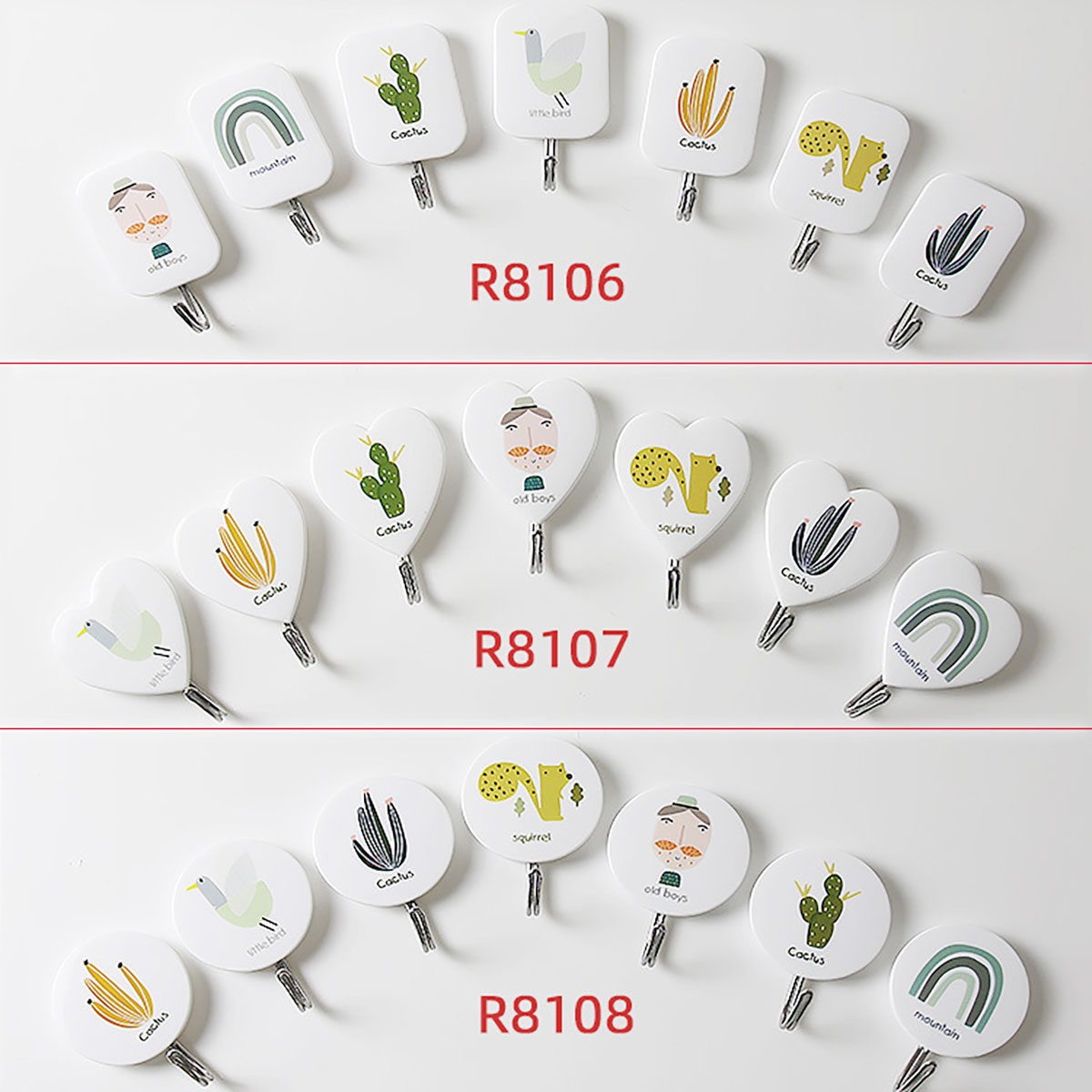 Remarks:白色底,共七個(gè)圖案隨機(jī)搭配包裝,共三個(gè)型號:長方形,心形,圓形