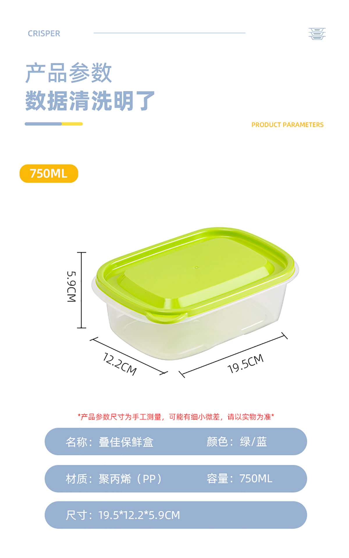 長方形750ML保鮮盒(3個裝)