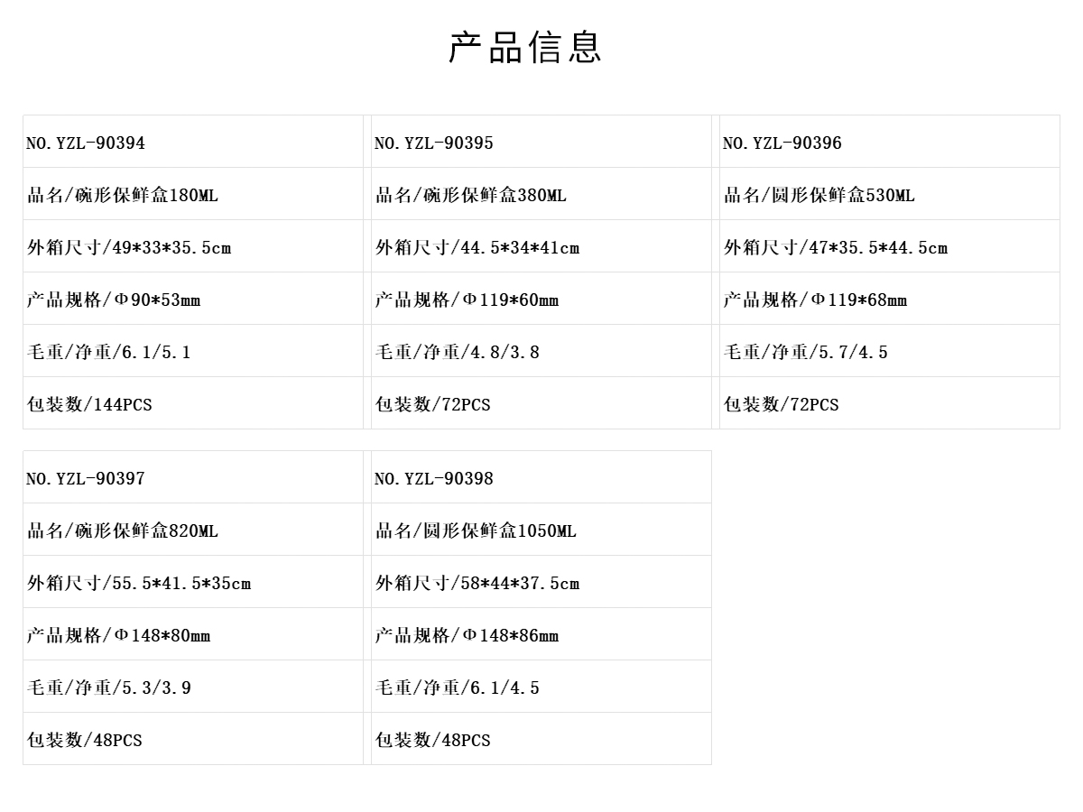 碗形/圓形保鮮盒180ML/380ML/530ML820ML/1050ML