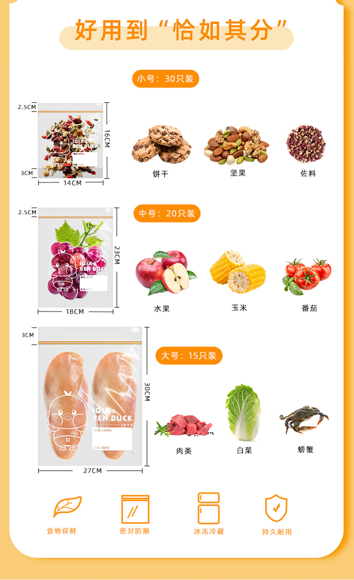 加厚雙筋保鮮密封袋(小號30個裝/中號20個裝/大號15個裝)