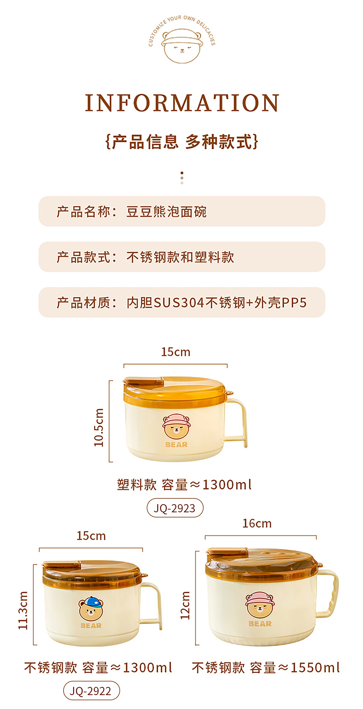 Size: JQ-2922:150*113mm/不銹鋼款1300ml JQ-2923:150*105mm/塑料款1300ml
