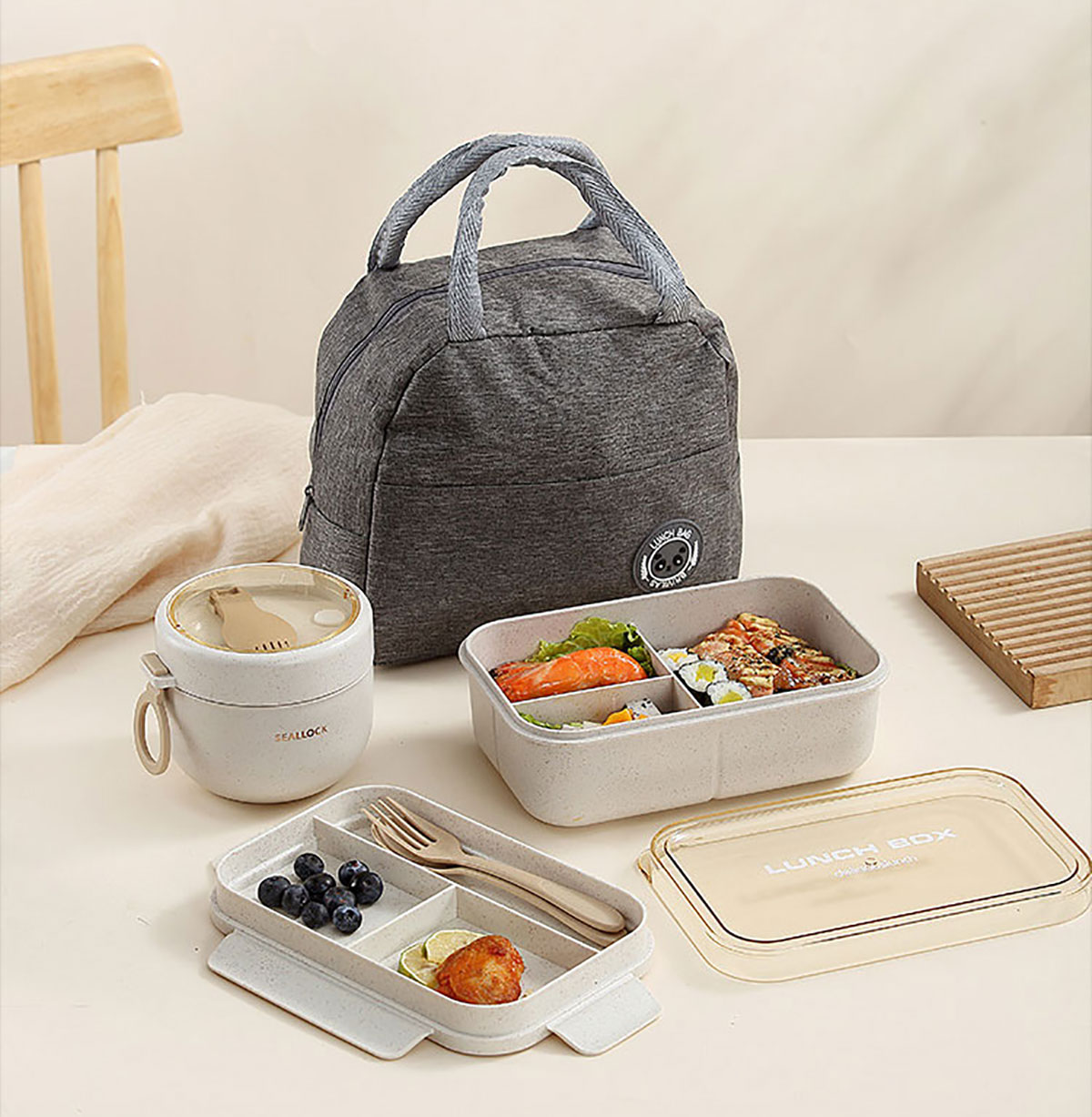 簡麥便當(dāng)盒飯盒/套裝(飯盒+水杯/飯盒+水杯+灰色餐袋/飯盒+燕麥杯+灰色餐袋)