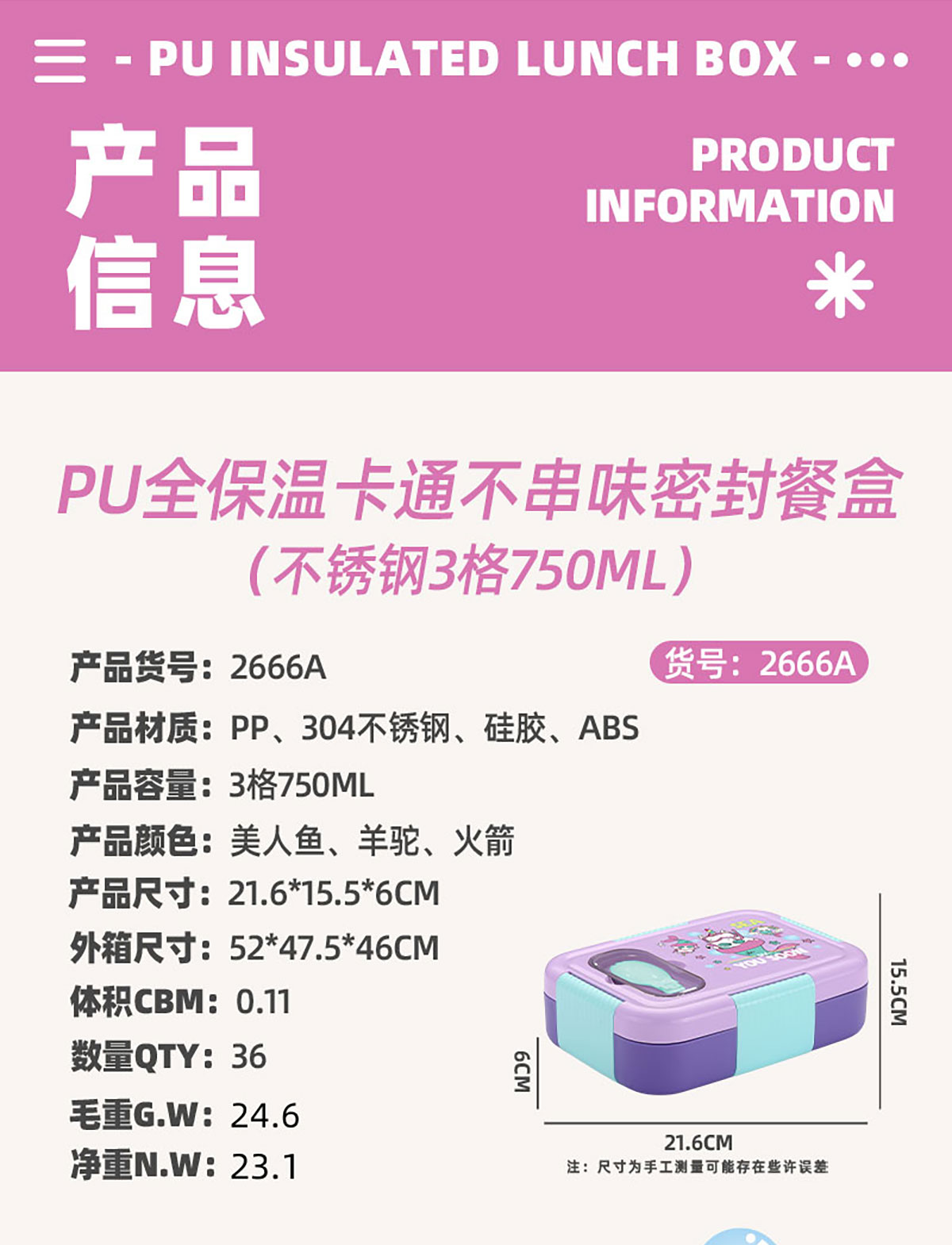 Size: AQX-2666A(3格):216*155*60mm/750ml AQX-2667A(2格):216*155*60mm/800ml