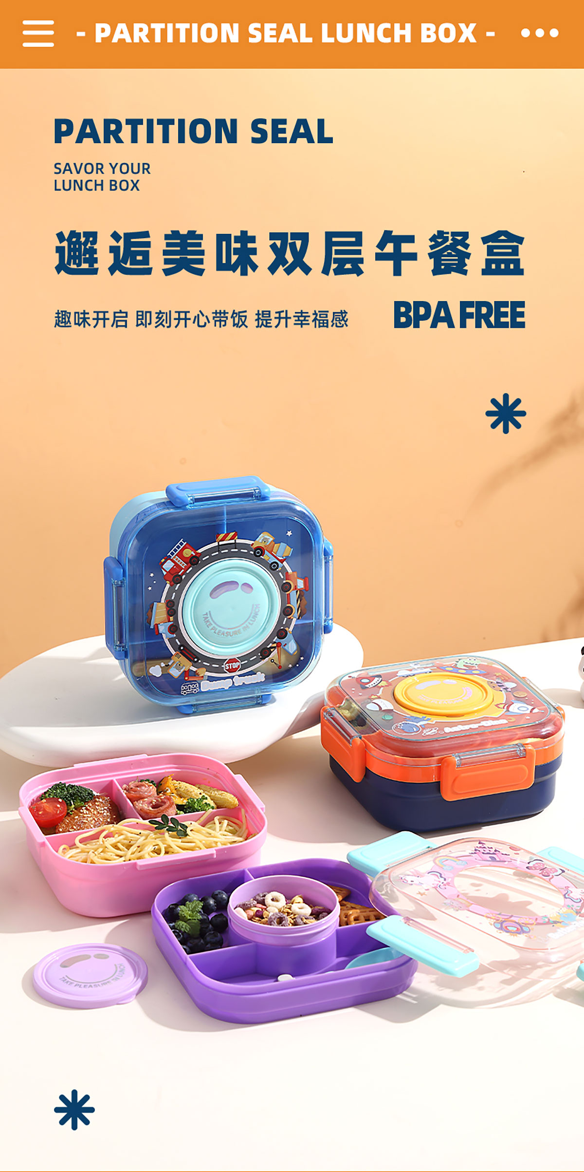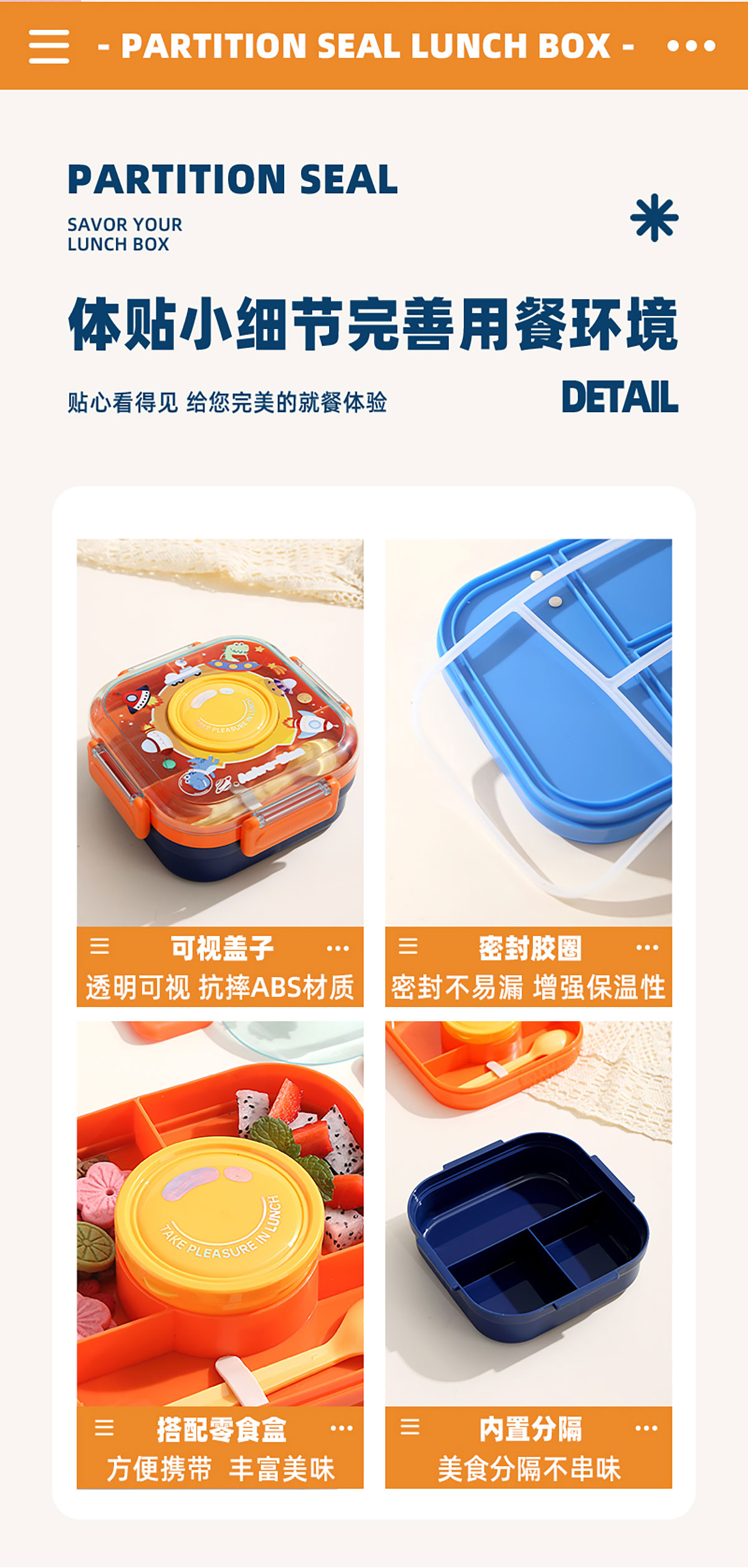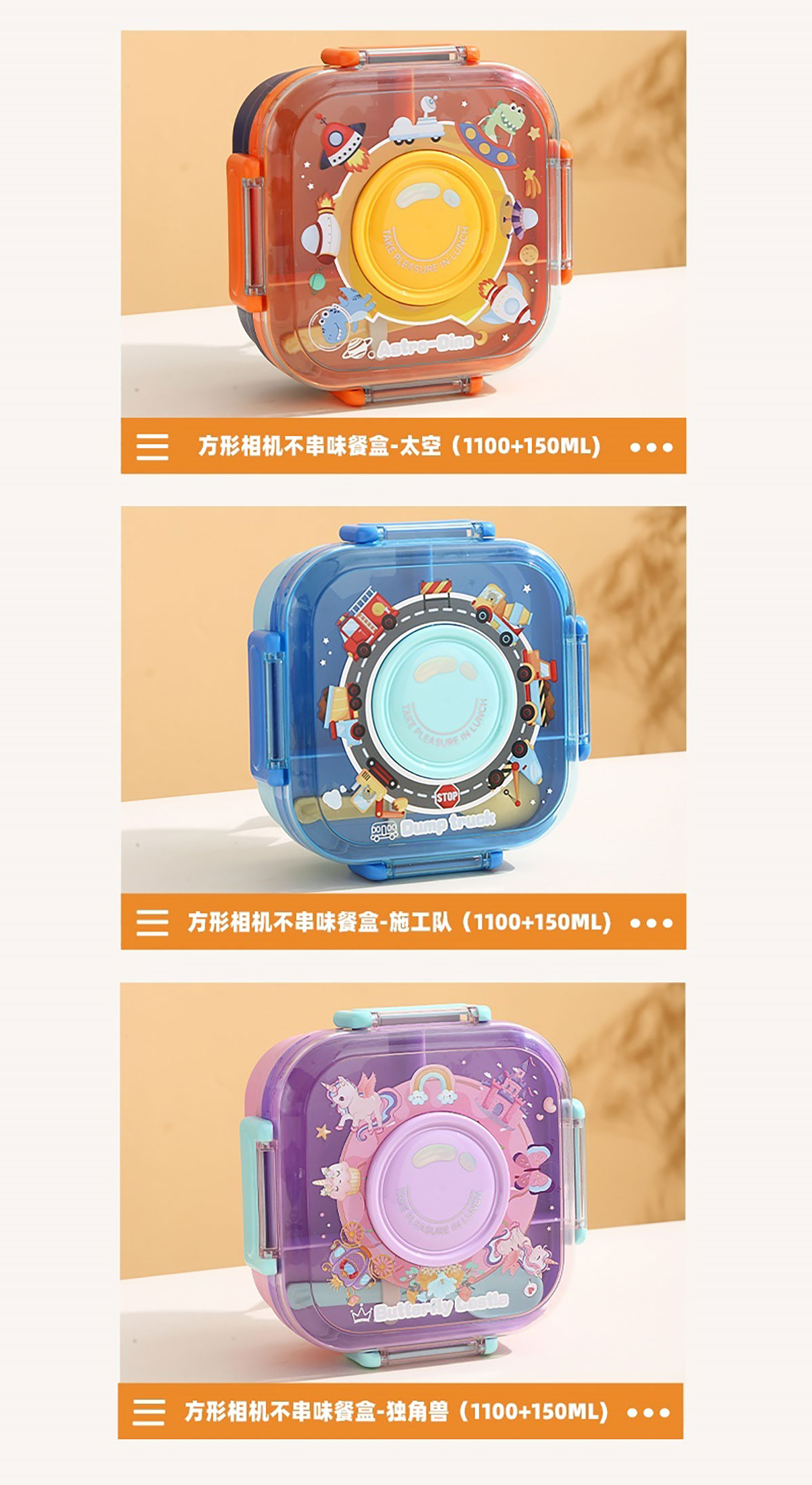 相機(jī)不串味餐盒(方形塑料三格1100ml+碗150ml+PP勺)