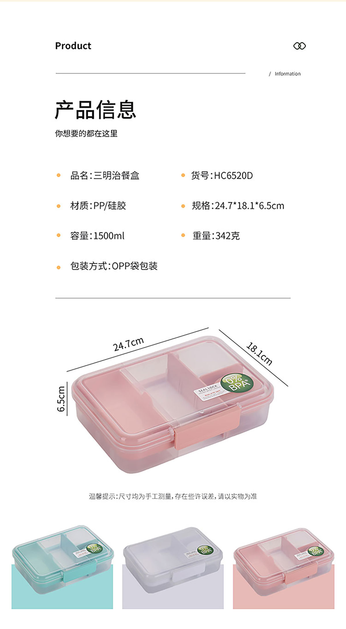 Size: 247*181*65mm/1500ml