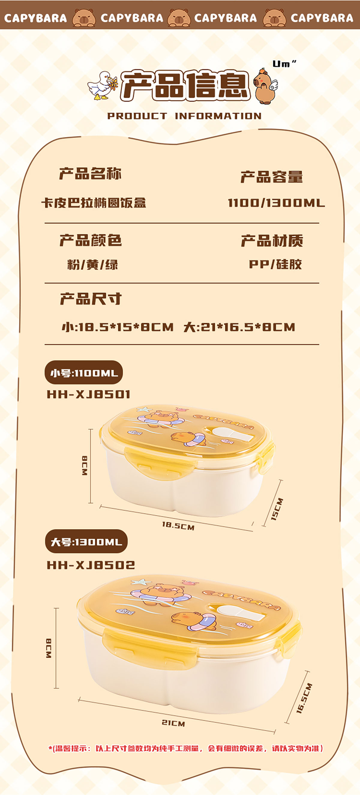 Size: HH-XJ8501(小號):192*152*80mm/1100ml