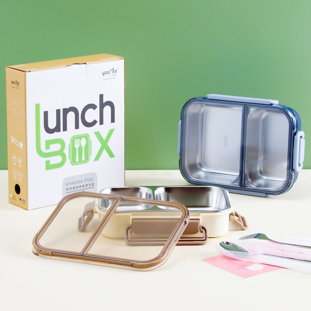 Size: 飯盒:225*166*55mm/700ml 叉勺盒:197*52*29mm