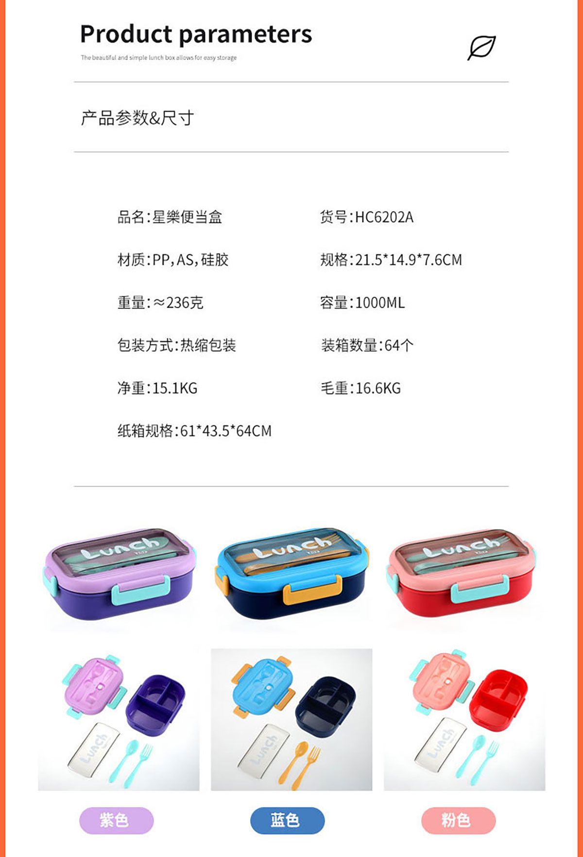 星樂便當(dāng)盒(PP矮款/PP加高款/不銹鋼矮款/不銹鋼加高款/水杯套裝)