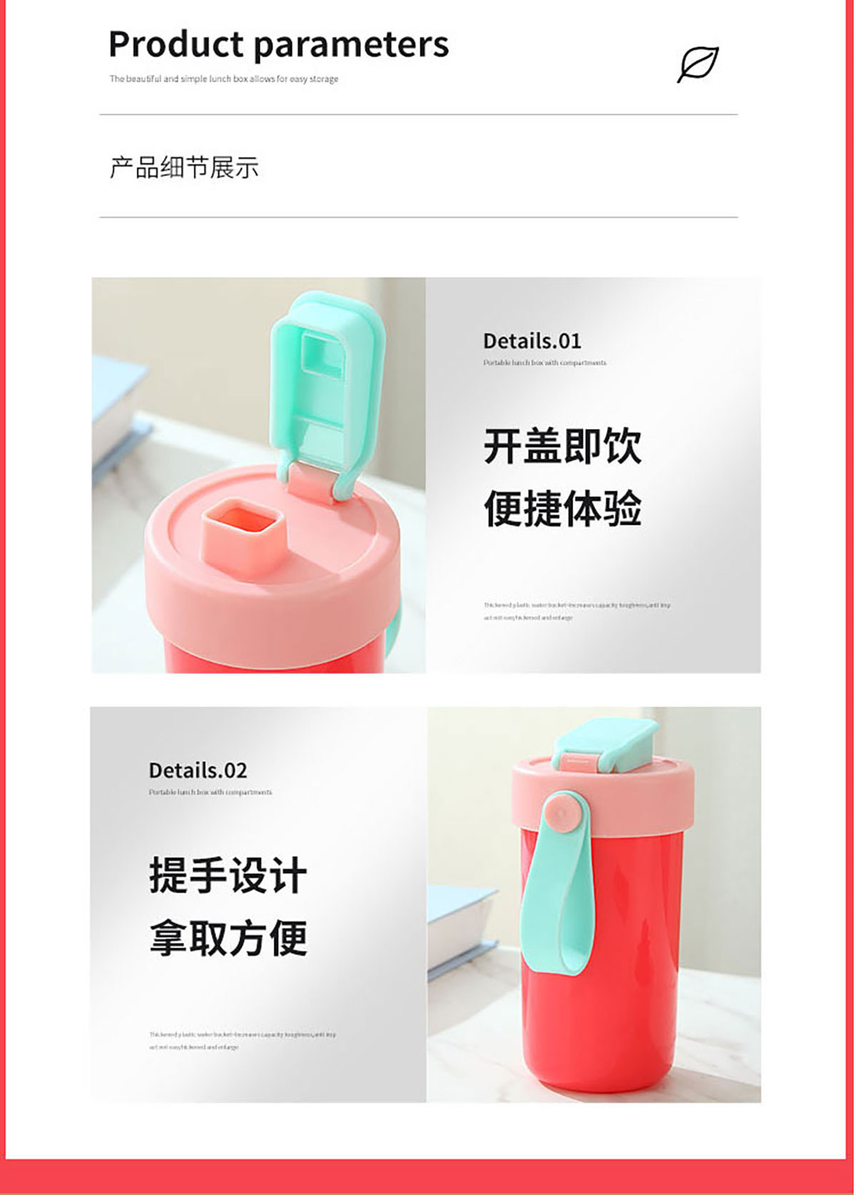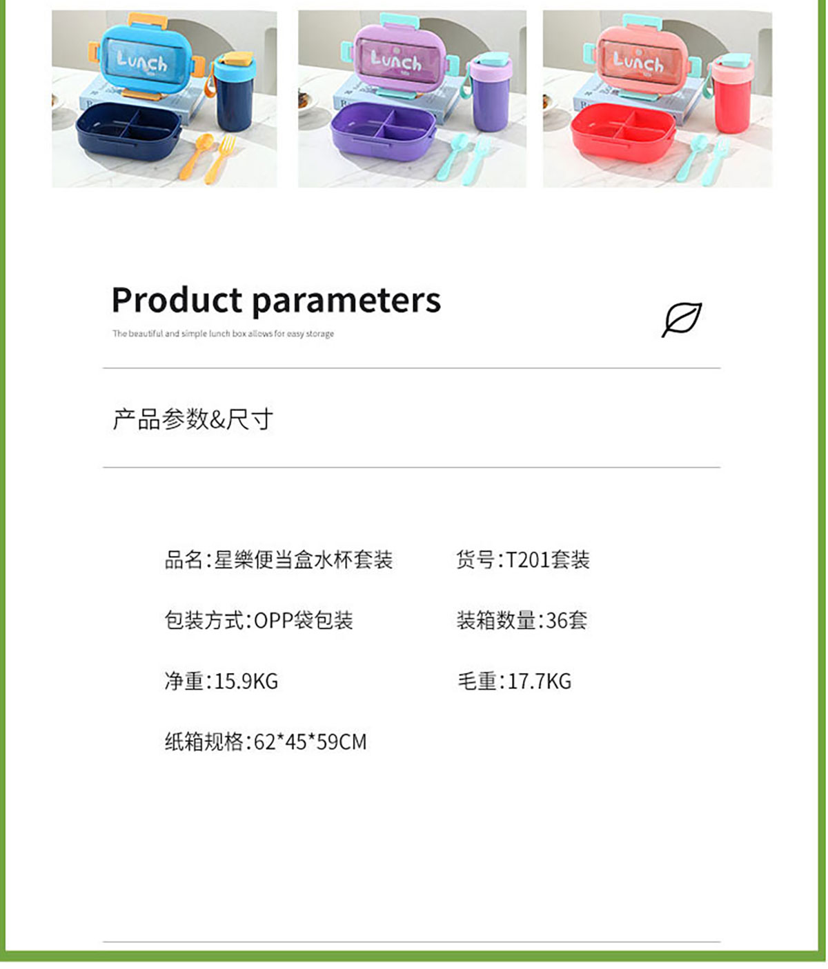 SWY-T201(水杯套裝):飯盒:215*149*76mm/1000ml 水壺:直徑82*161mm/480ml
