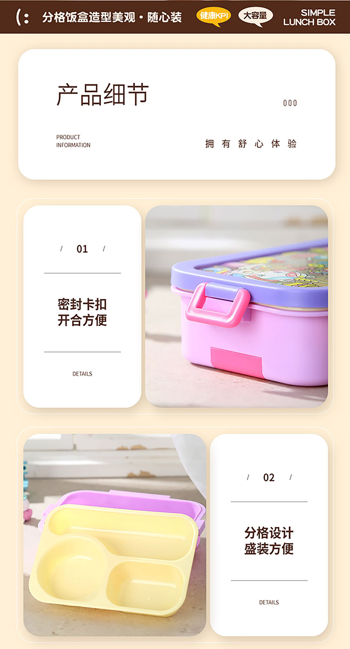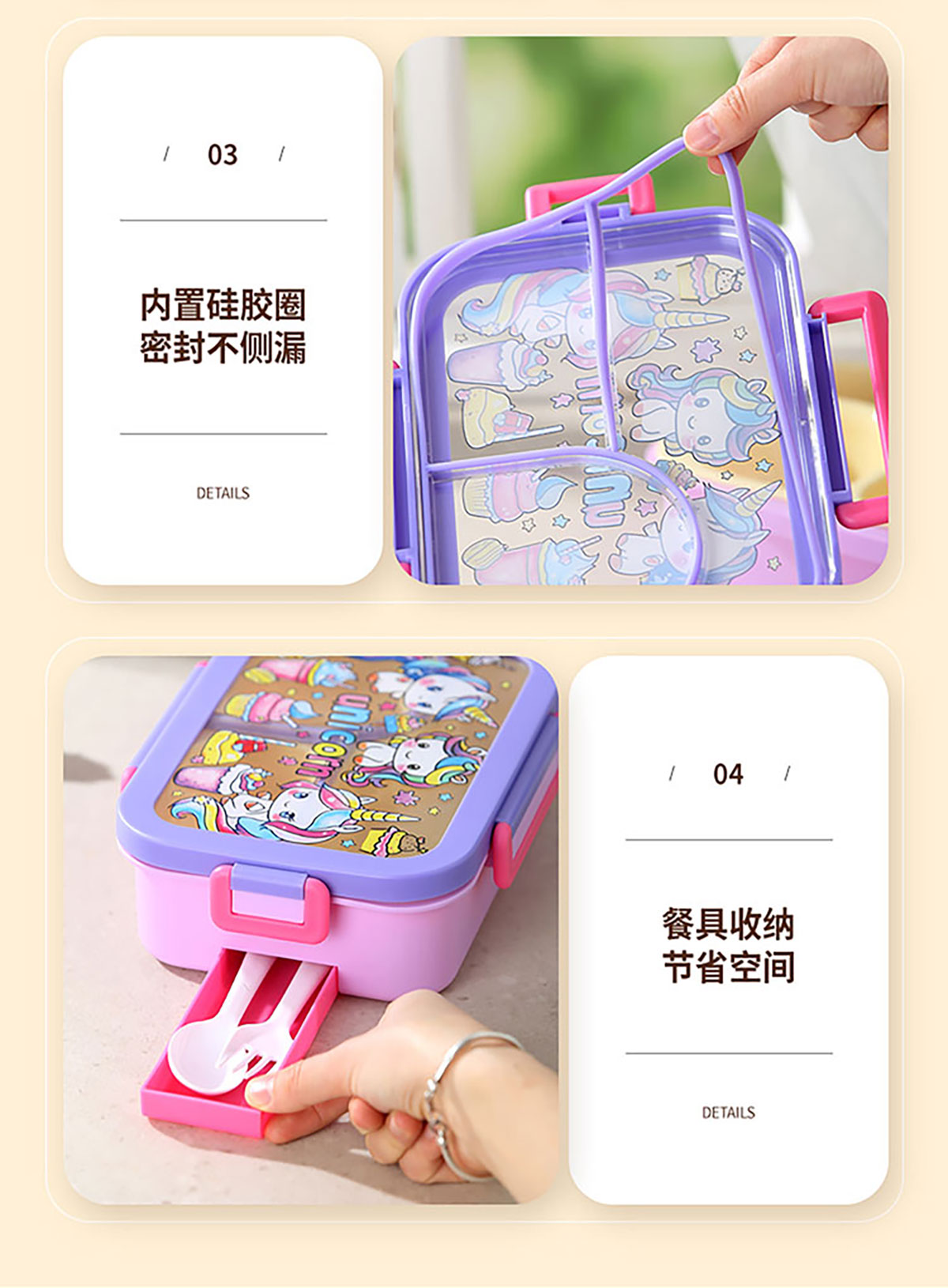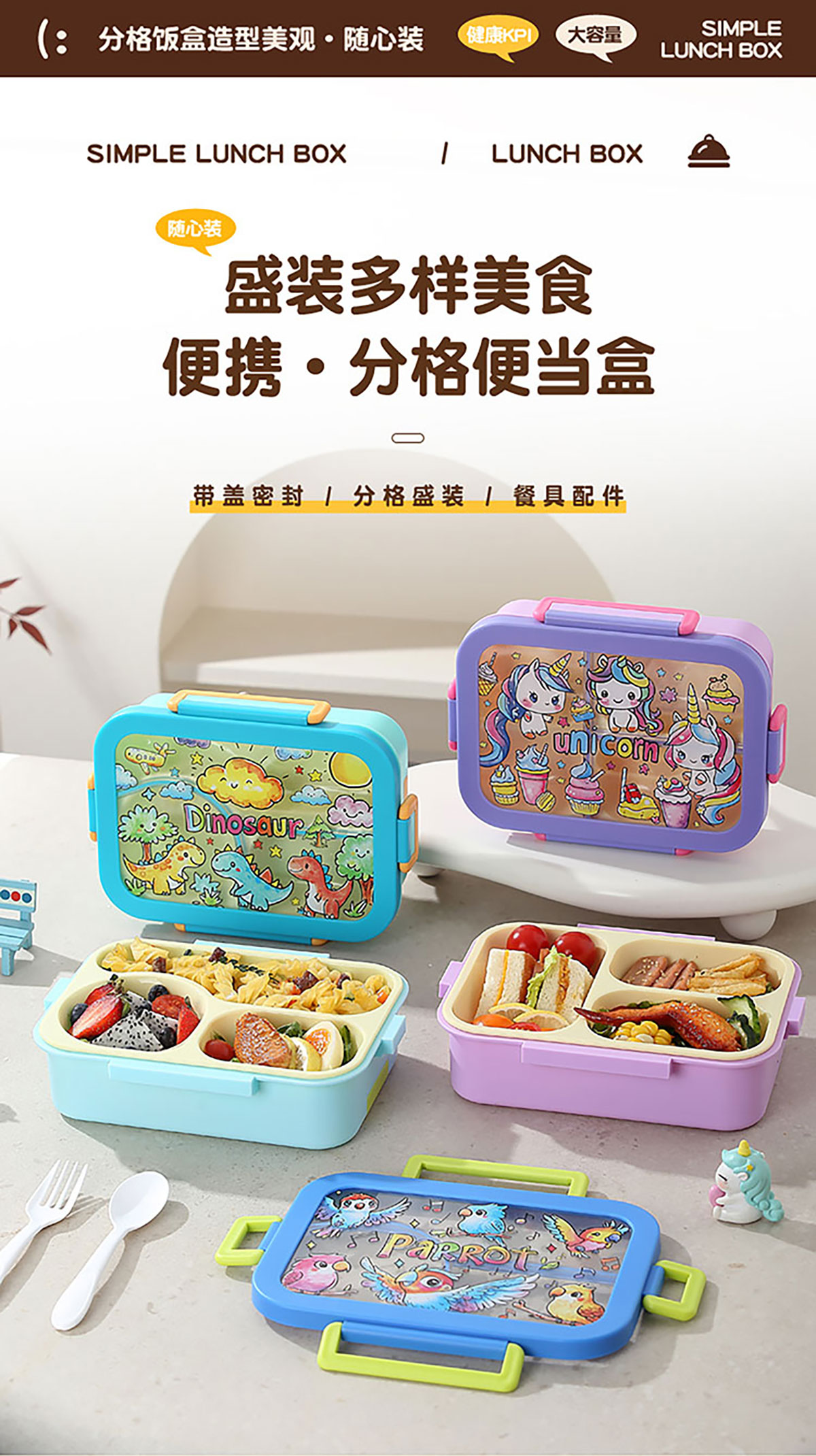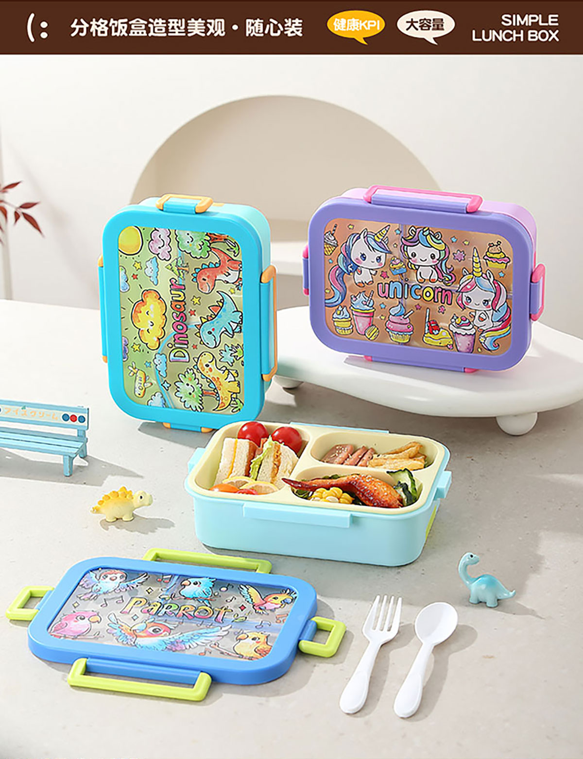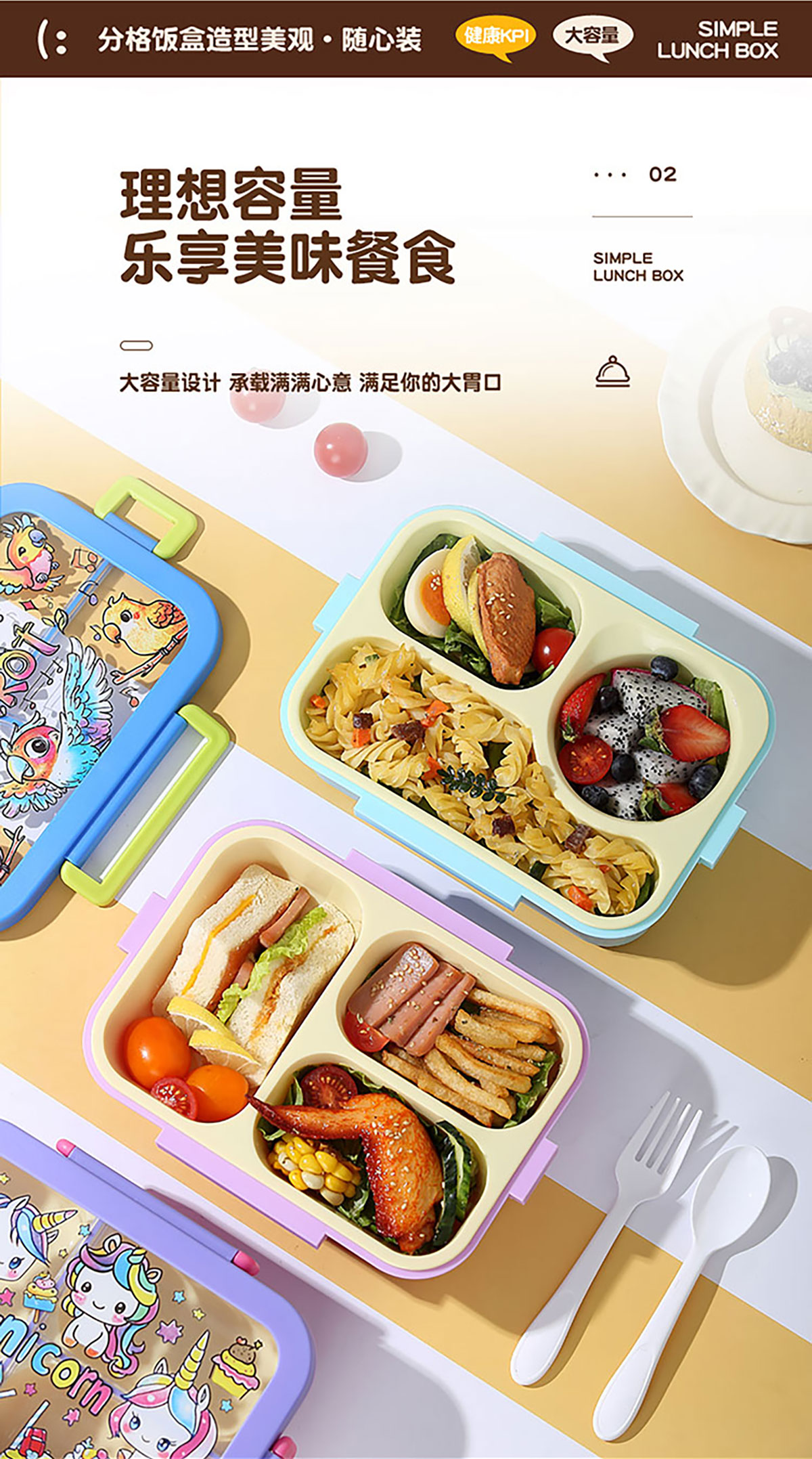 星樂(lè)卡通便當(dāng)盒 下單可選三格700ml/三格帶碗650ml