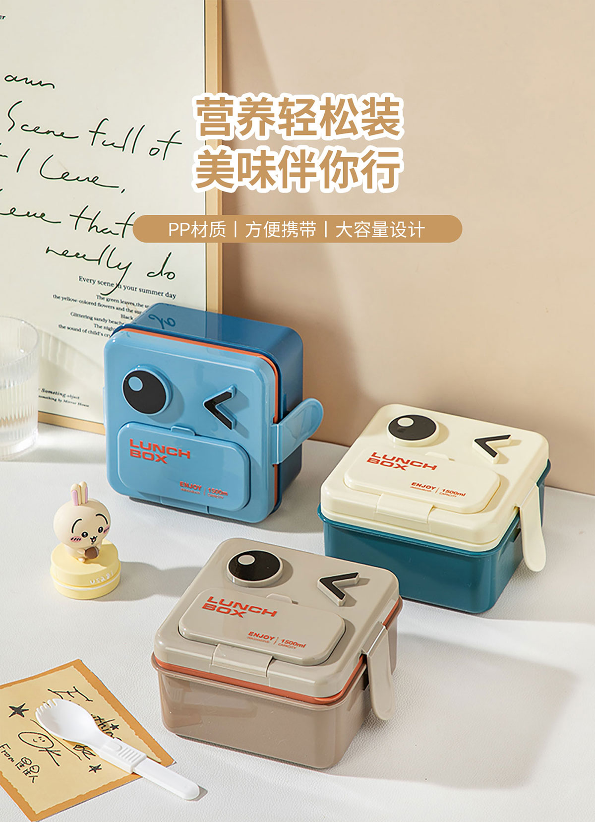 萌趣笑臉雙層可收納飯盒1500ml