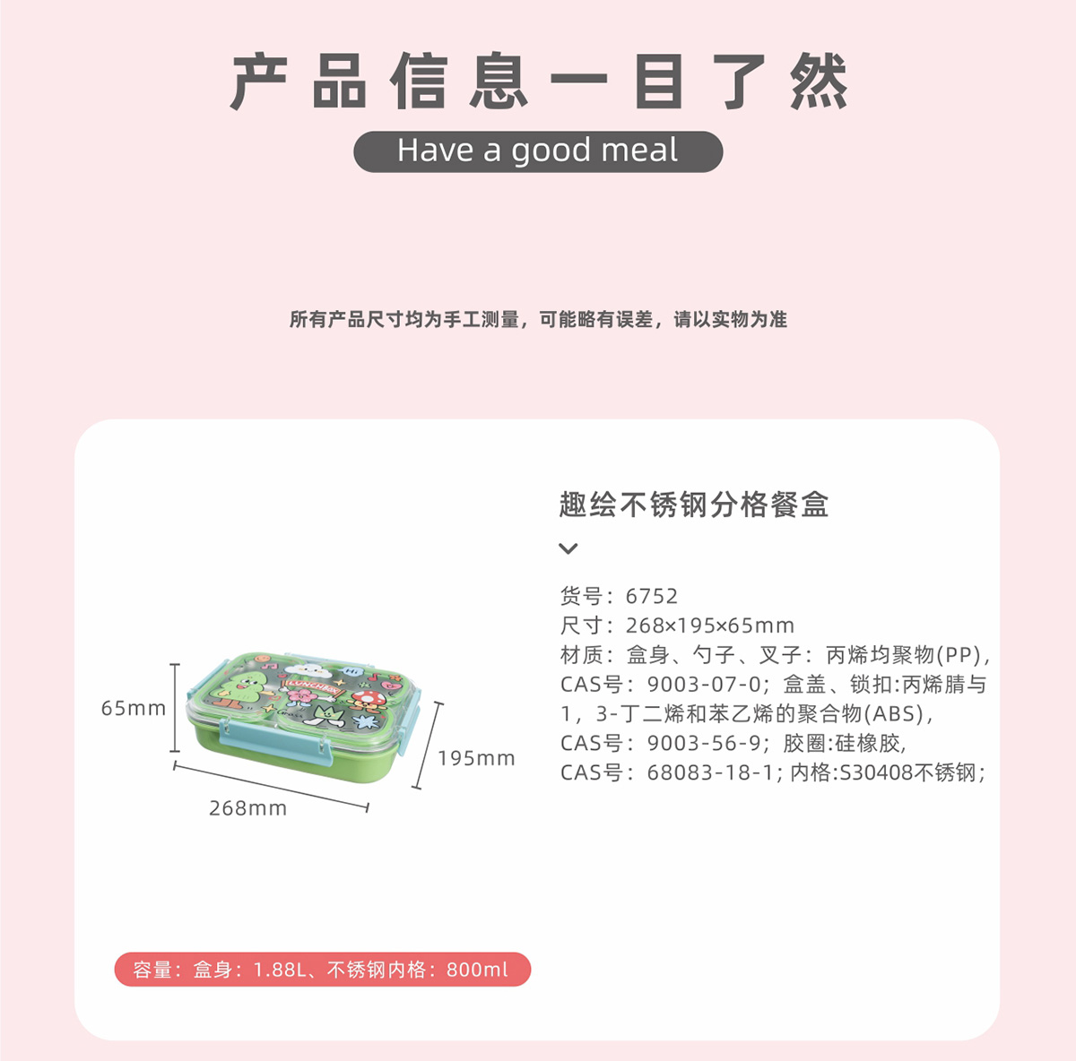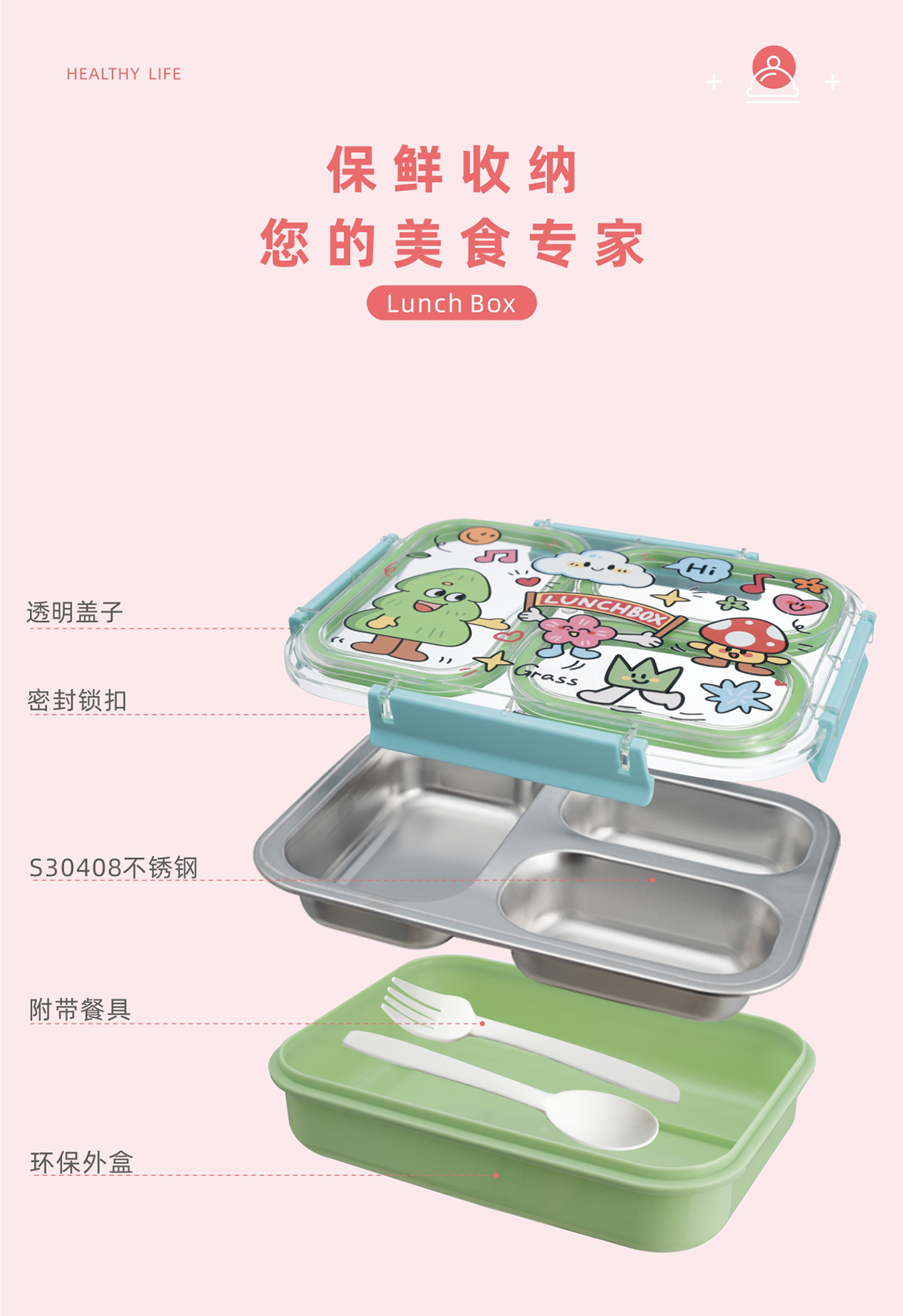 趣繪不銹鋼分格餐盒(帶餐具)