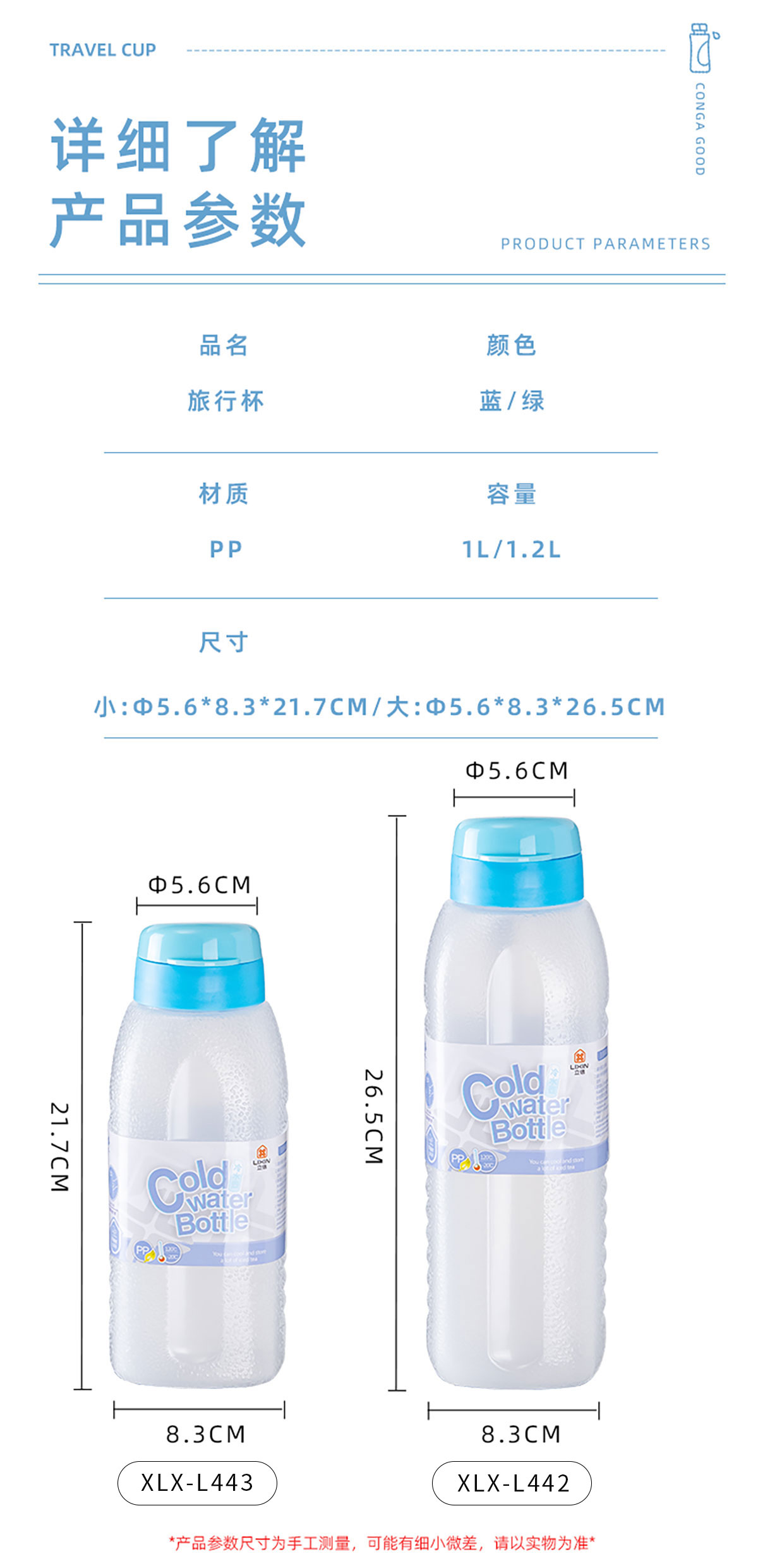 XLX-L443(小號(hào)):Φ56*83*217mm/1L